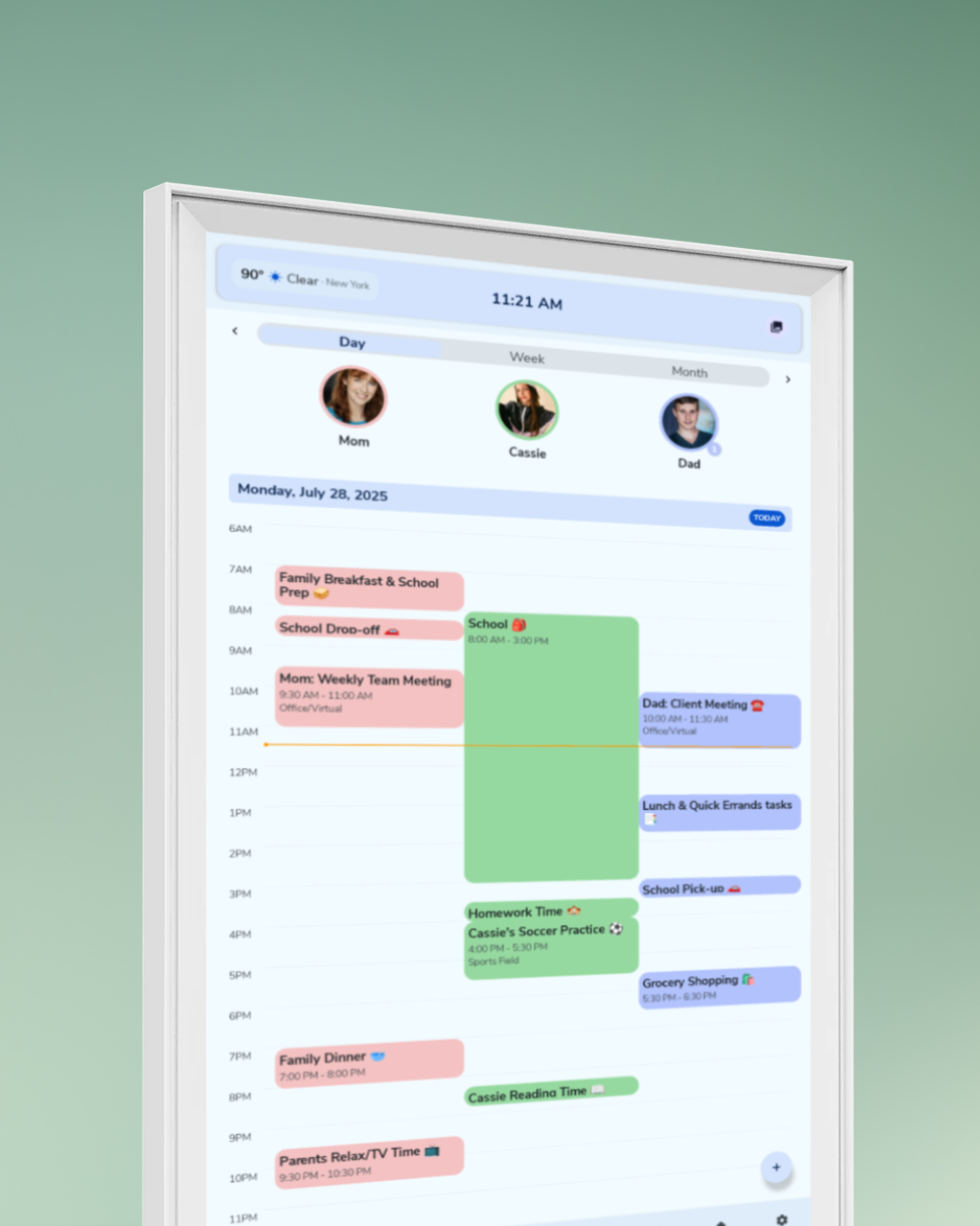Family Profiles: Create profiles for each member so everyone’s schedule, chores, and reminders stay organized.